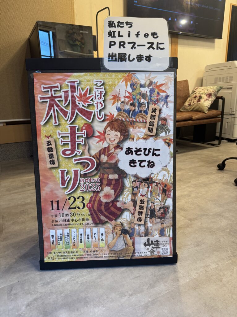 虹Life × 株式会社宮崎ヒューマンサービス 福祉用具展示会&試乗会 同時開催 明日 11月23日(祝)、小林市で開催される 「こばやし秋まつり」 に虹Lifeが出展します。 今年は、株式会社宮崎ヒューマンサービス様との合同企画として、 地域の皆さまに “見て...